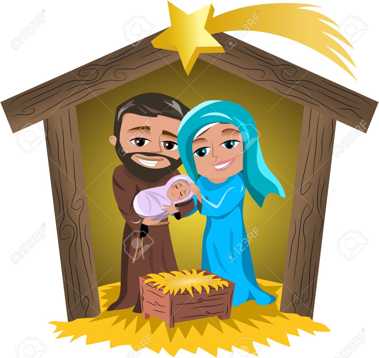 Vettoriale Natale Presepe Con Maria E Giuseppe Azienda Neonato Gesu Che Dorme In Una Capanna Isolata Image 43757561