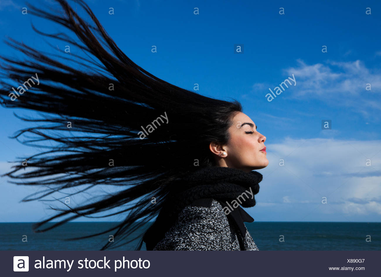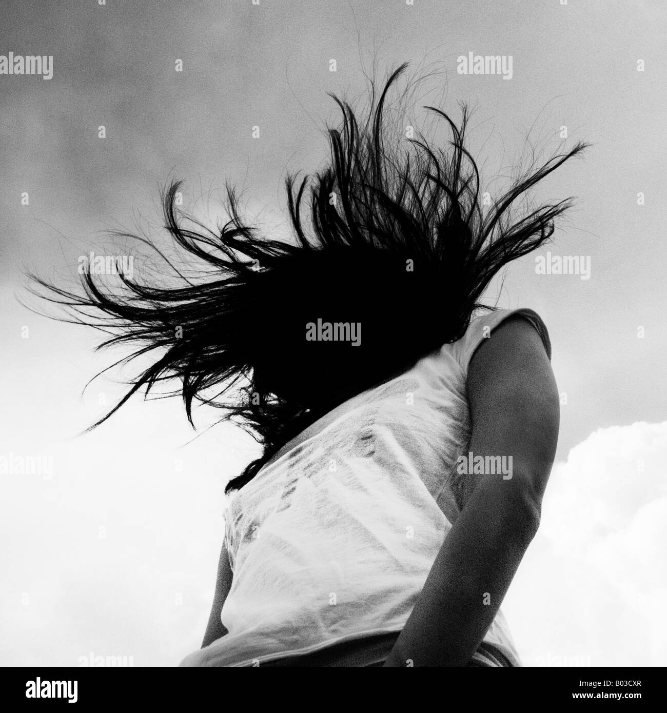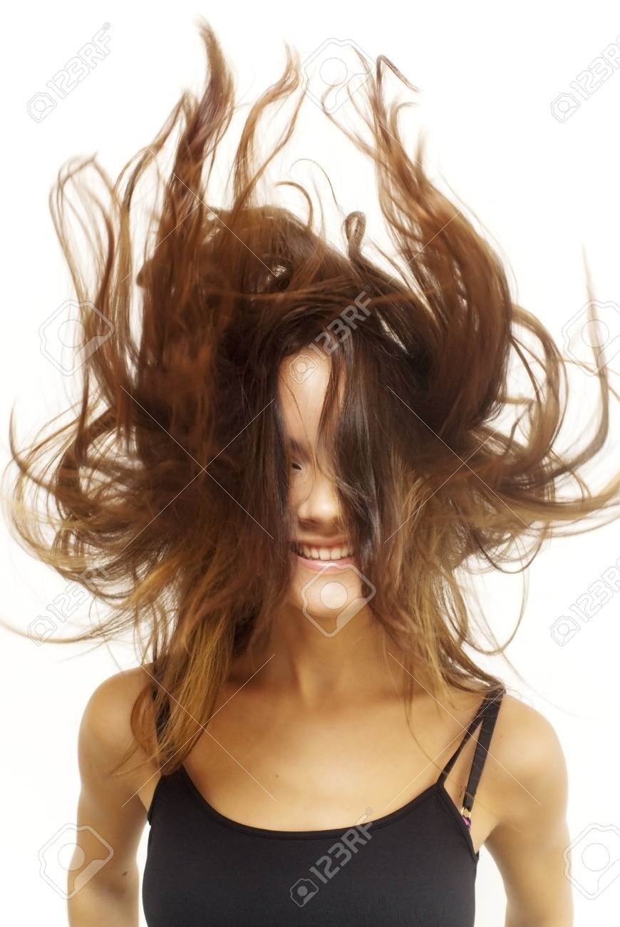 Giovane Donna Con I Capelli Al Vento Foto Stock Alamy