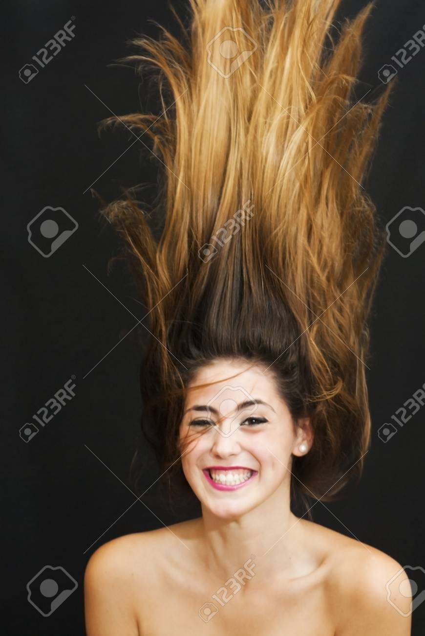 Immagini Stock Ritratto Di Una Donna Attraente E Capelli Al Vento Su Sfondo Nero Image 21278523