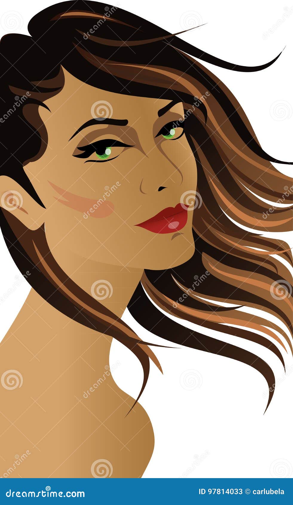 Donna Castana Con Capelli Al Vento Illustrazione Vettoriale Illustrazione Di Faccia Rosso 97814033