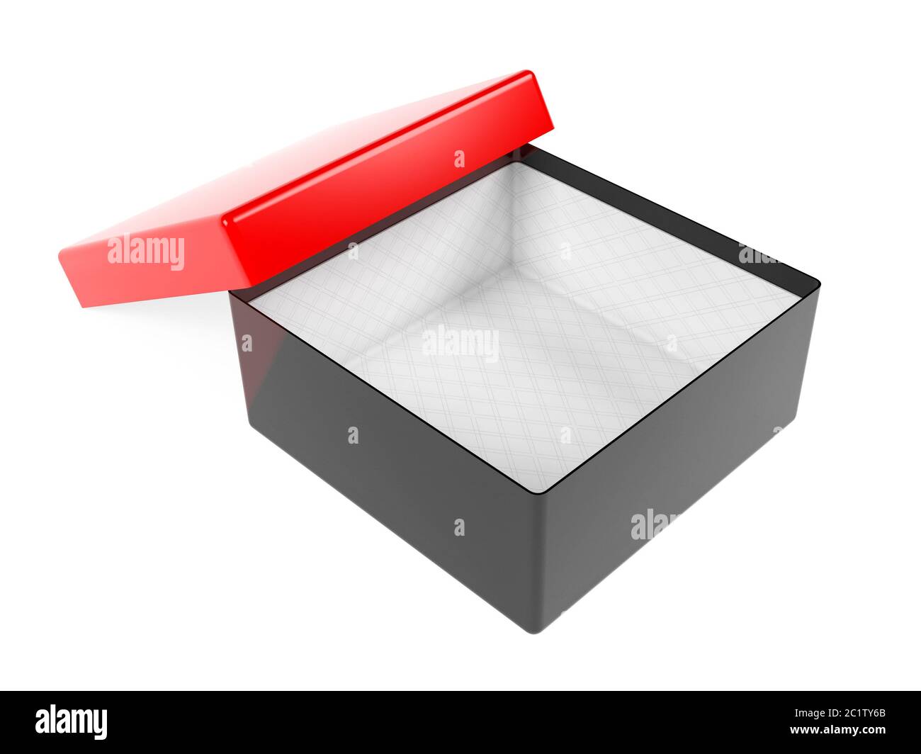 Black Open Gift Box With Red Lid Realistic Carton Mock Up 3d Rendering Illustration Isolated Stock Photo Alamy