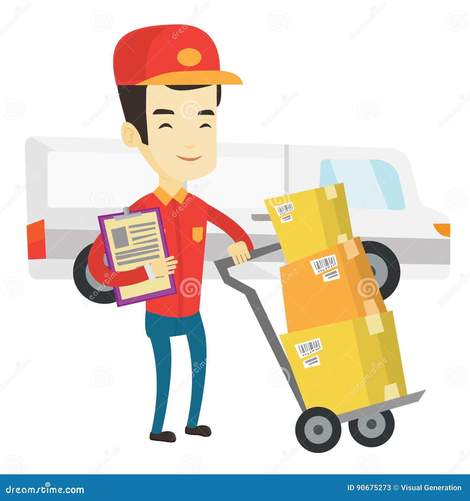 Delivery Courier With Cardboard Boxes Stock Vector Illustration Of Trolley Deliver 90675273