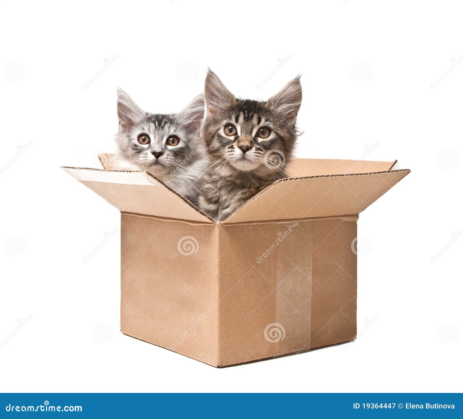 Two Small Kittens In A Cardboard Box Stock Image Image Of Tabby Cardboard 19364447