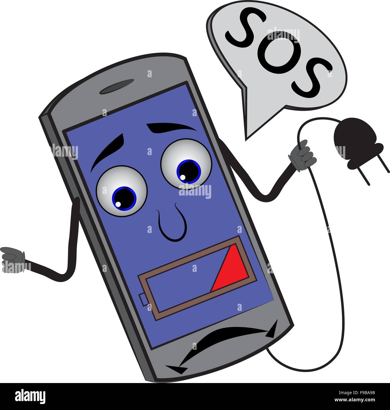 Cartoon Cellulare Con Indicatore Di Carica 25 Il Telefono Ricerca Per Una Uscita E Detto Sos Livello Basso Della Batteria Immagine E Vettoriale Alamy