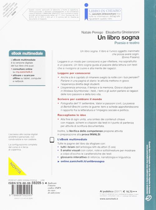Un Libro Sogna Poesia E Teatro Per Le Scuole Superiori Con Aggiornamento Online Perego Natale Ghislanzoni Elisabetta Zanichelli 9788808945471 Libreria Universitaria