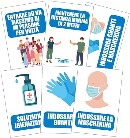 Pack 6 Cartelli Adesivi Covid 19 Regole Di Sicurezza Dimensione 13 5x20 Cm Kamiustore Amazon It Casa E Cucina
