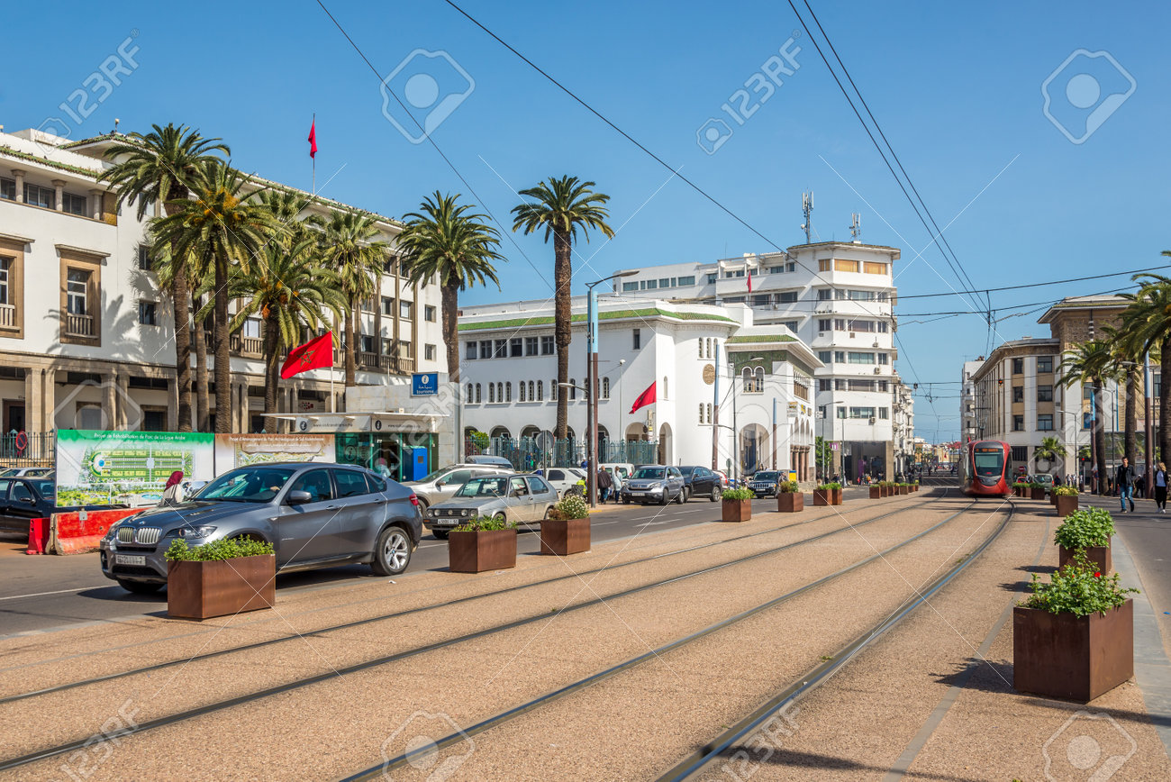 Immagini Stock Tram Della Citta Su Una Strada Di Casablanca In Marocco Image 73087159