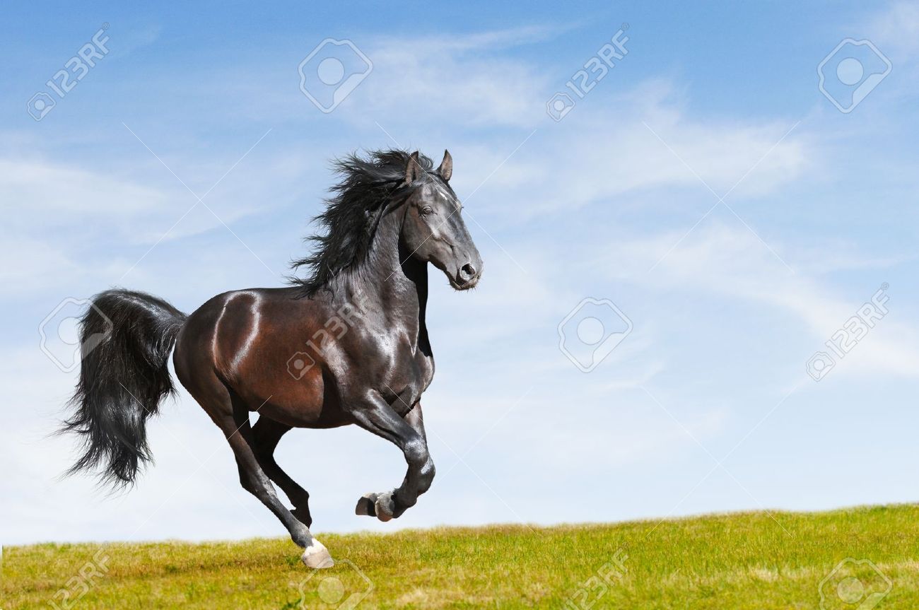 Immagini Stock Nero Kladruby Gradino Cavallo Al Galoppo Sulla Liberta Image 11007673