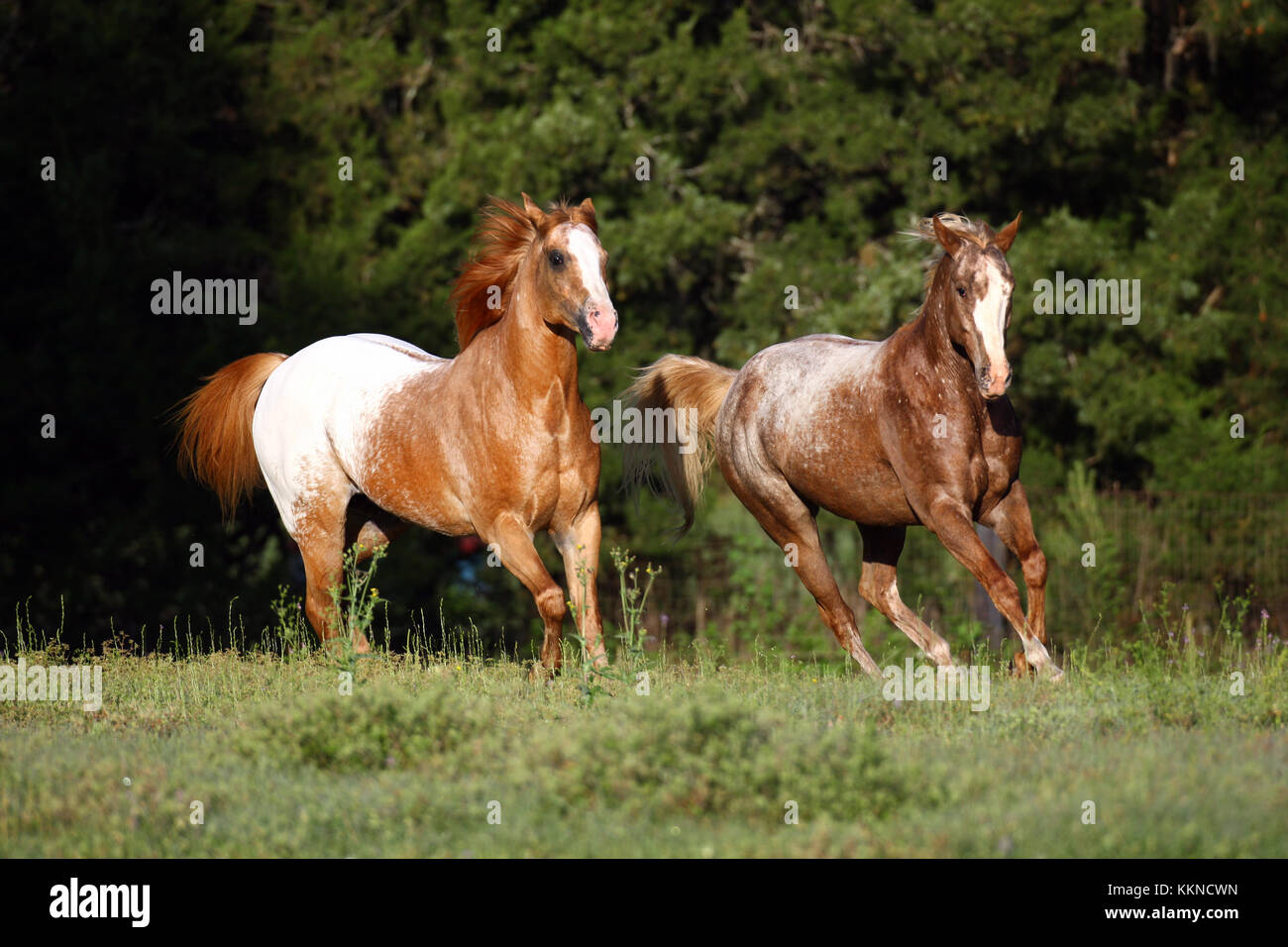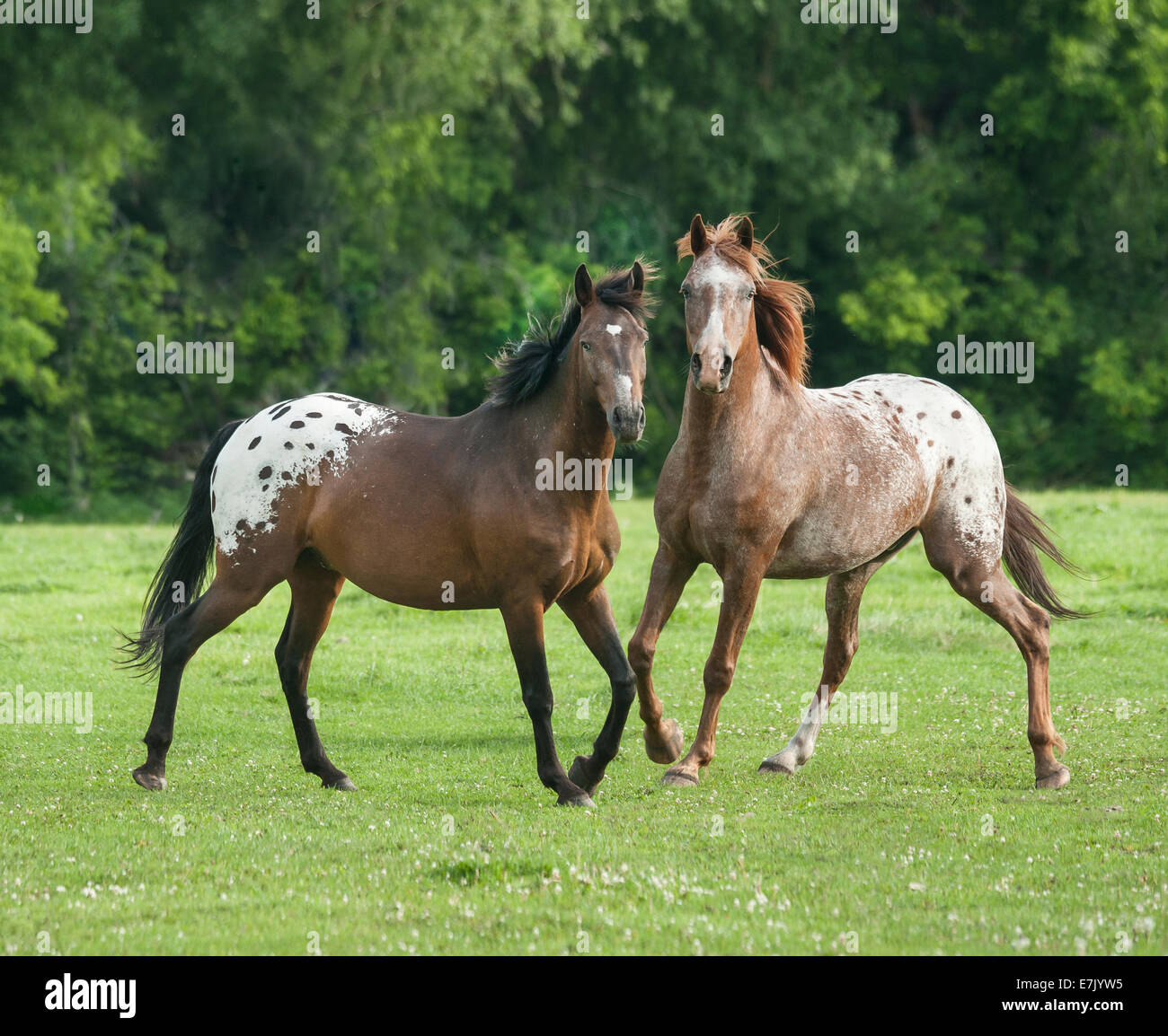 Cavalli Appaloosa Cantering Insieme Foto Stock Alamy