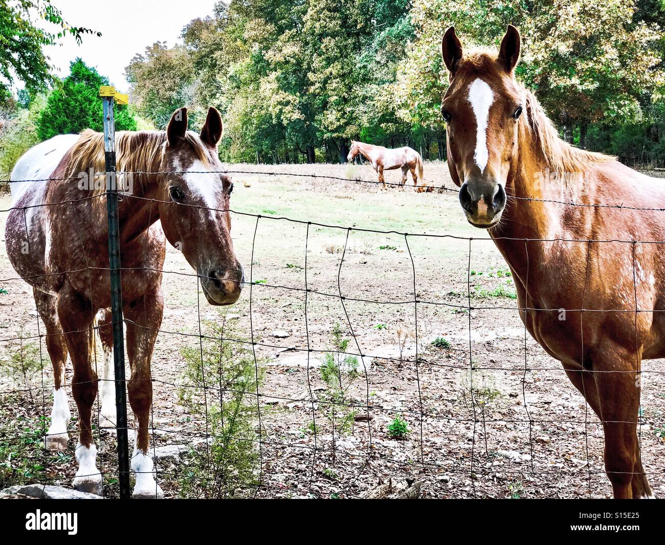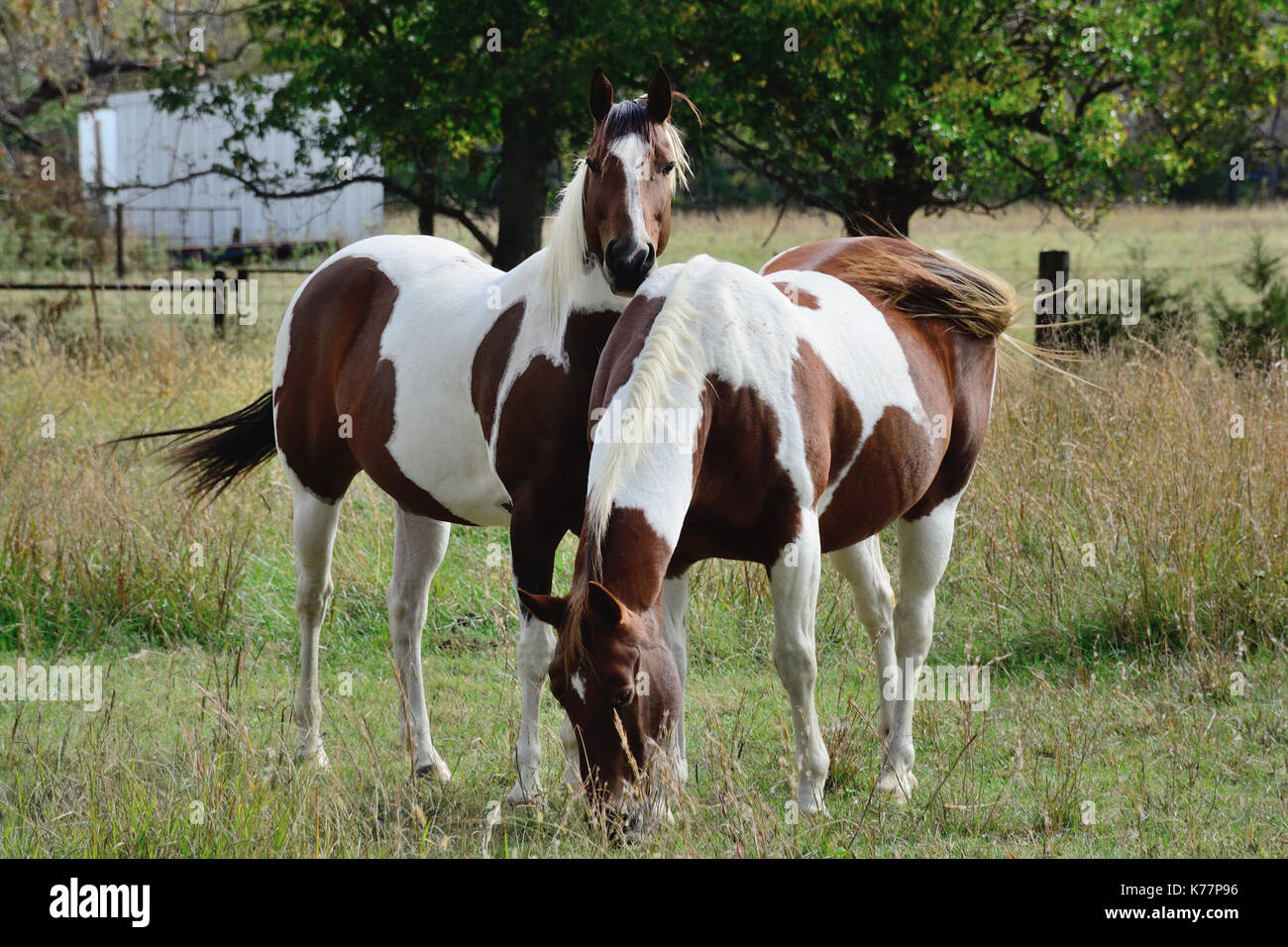 Due Cavalli Appaloosa Stare Insieme In Un Pascolo Di Oklahoma Foto Stock Alamy