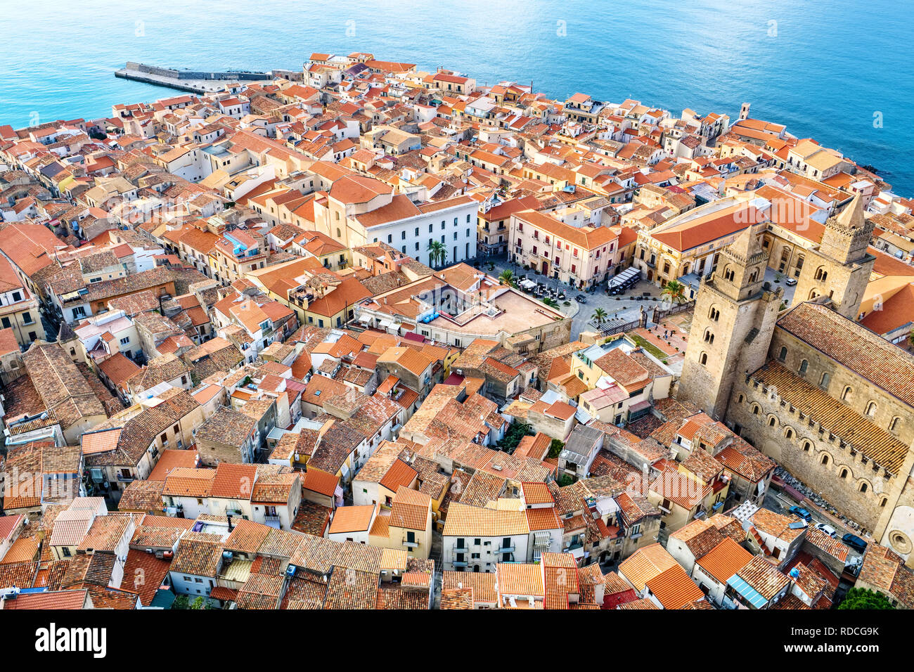 Red Roof Of Old Town Cefalu Sicily Italy Europe Stock Photo Alamy