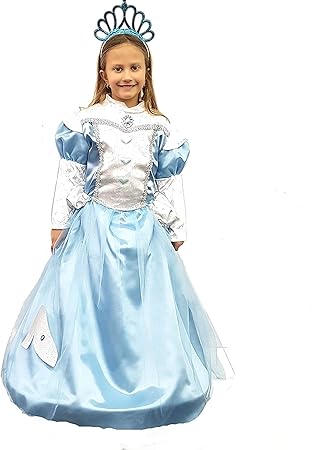 Piccoli Monelli Costume Cenerentola Bambina 9 10 Anni Vestito Principessa Al Ballo Celeste Di Carnevale Misura Da Spalla A Terra 115 Cm Amazon It Giochi E Giocattoli