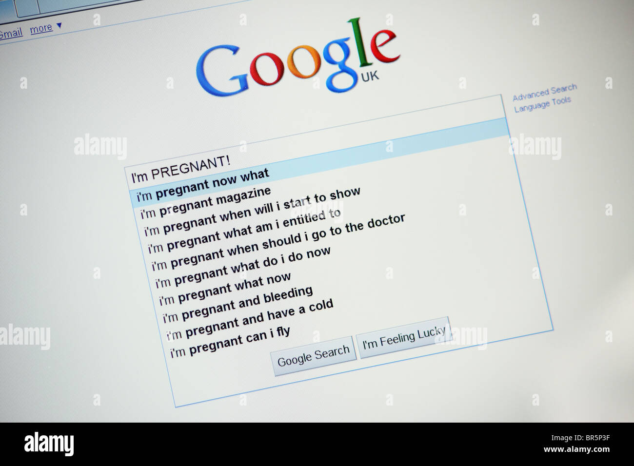 Una Ricerca Sul Motore Di Ricerca Google Sito Web In Cerca Di Consigli E Aiuto Di Essere Incinta Foto Stock Alamy
