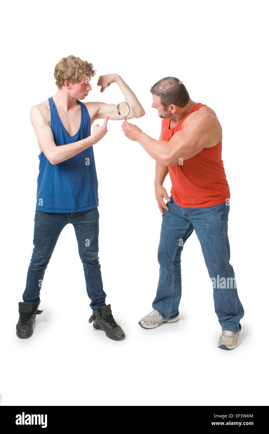 Uomo Con Lente Di Ingrandimento Per Cercare Un Altro Uomo Muscoli Foto Stock Alamy