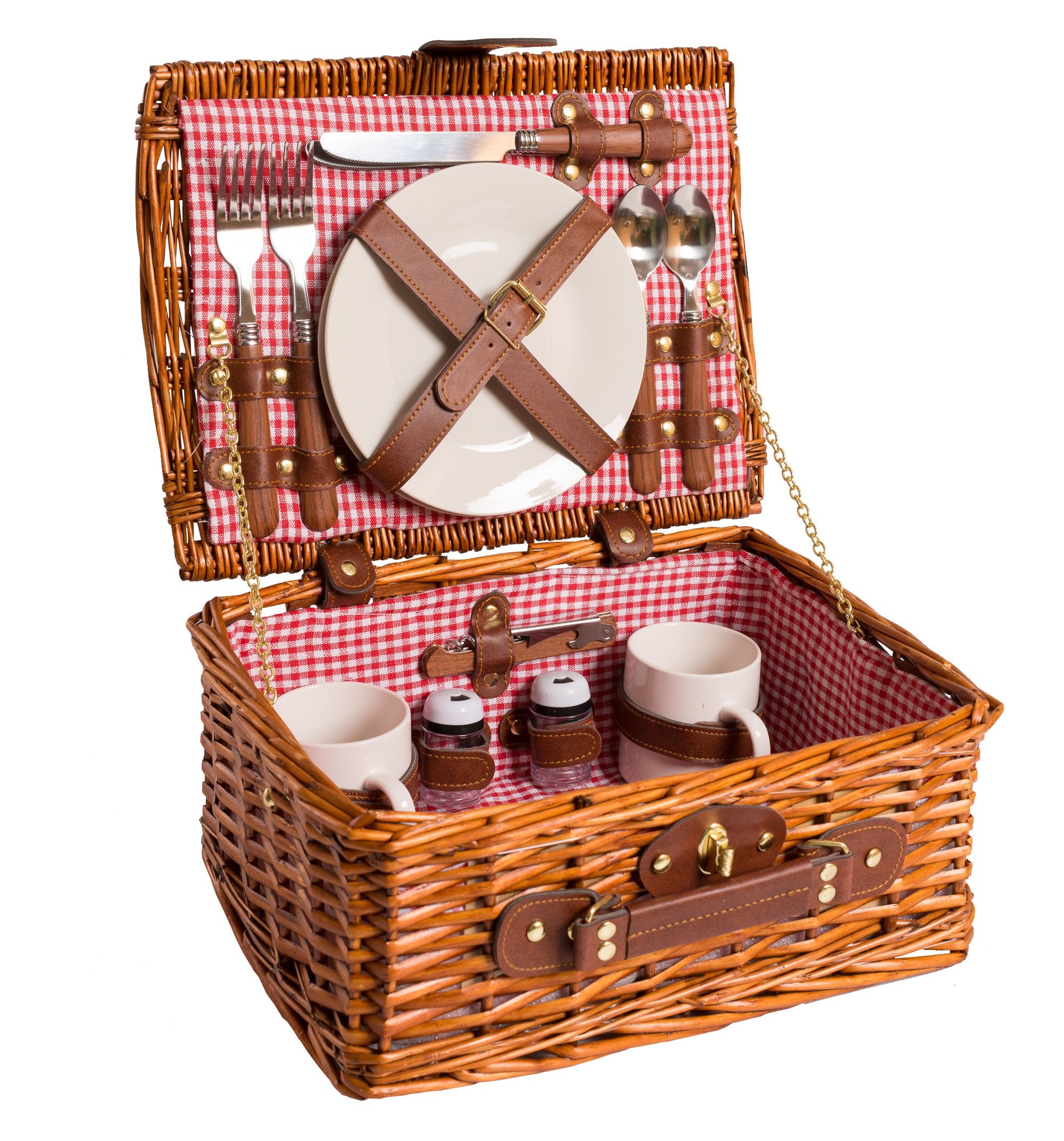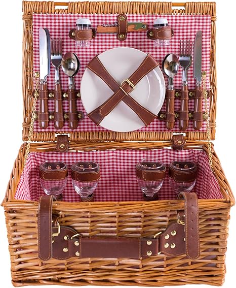 Egenuss Cestino Da Picnic In Vimini Per 4 Persone Accessori Inclusi Fantasia A Quadretti Rossi E Bianchi 43 X 30 X 20 Cm Amazon It Giardino E Giardinaggio