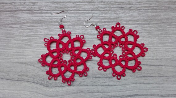 Handmade Tatting Earrings Cotton Color Red Very Light Etsy