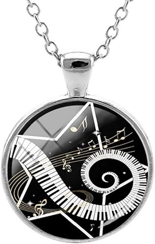 Collana Con Ciondolo Rotondo Stampa Con Vari Elementi Pianoforte Stella Chiave Di Violino Spartito Musicale Amazon It Gioielli