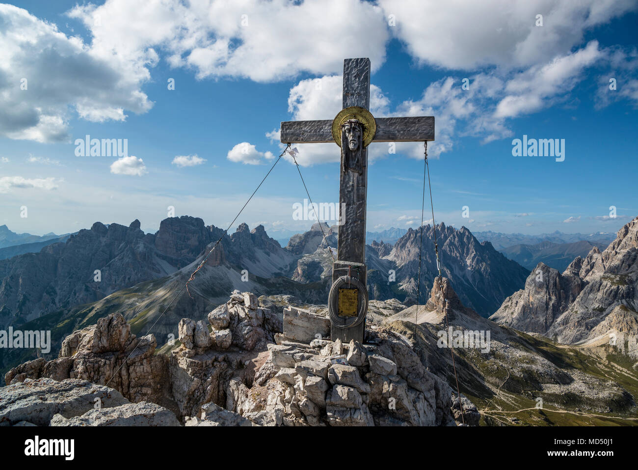 Summit Cross On The Summit Of The Paternkofel Tre Cime Di Lavaredo Tre Cime Natural Park Dolomites South Tyrol Italy Stock Photo Alamy