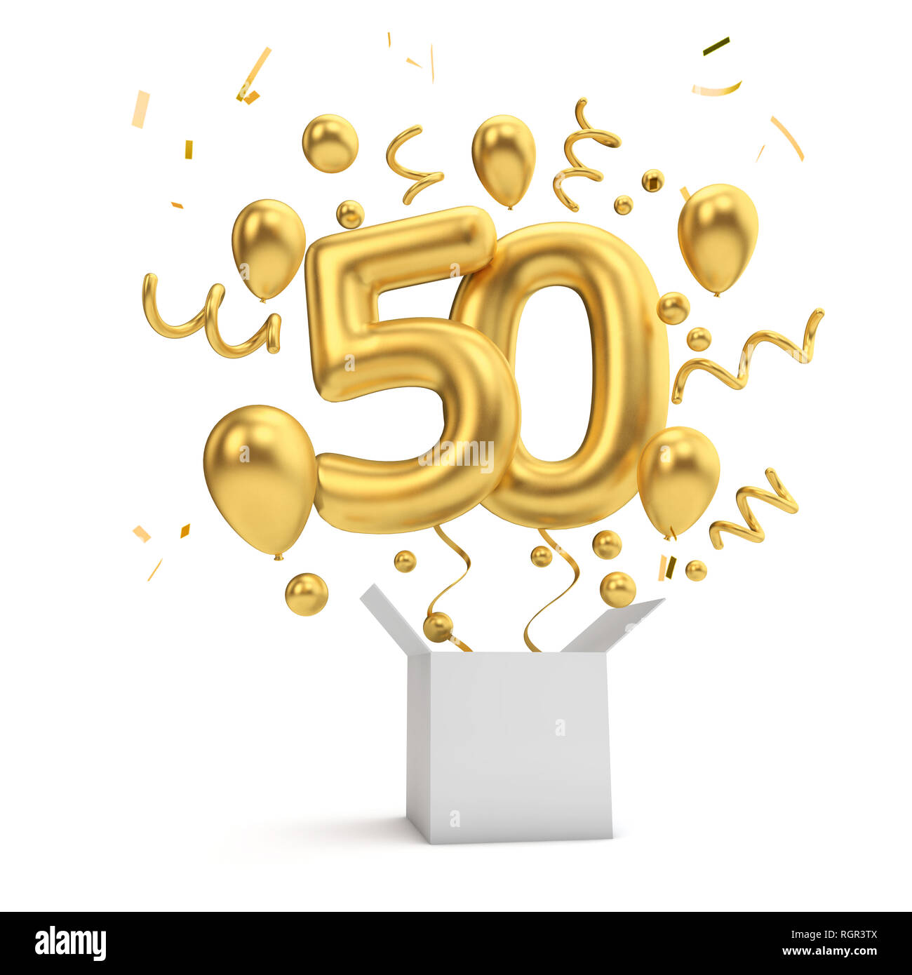 Felice Cinquantesimo Compleanno Sorpresa Oro Palloncino E Box Il Rendering 3d Foto Stock Alamy