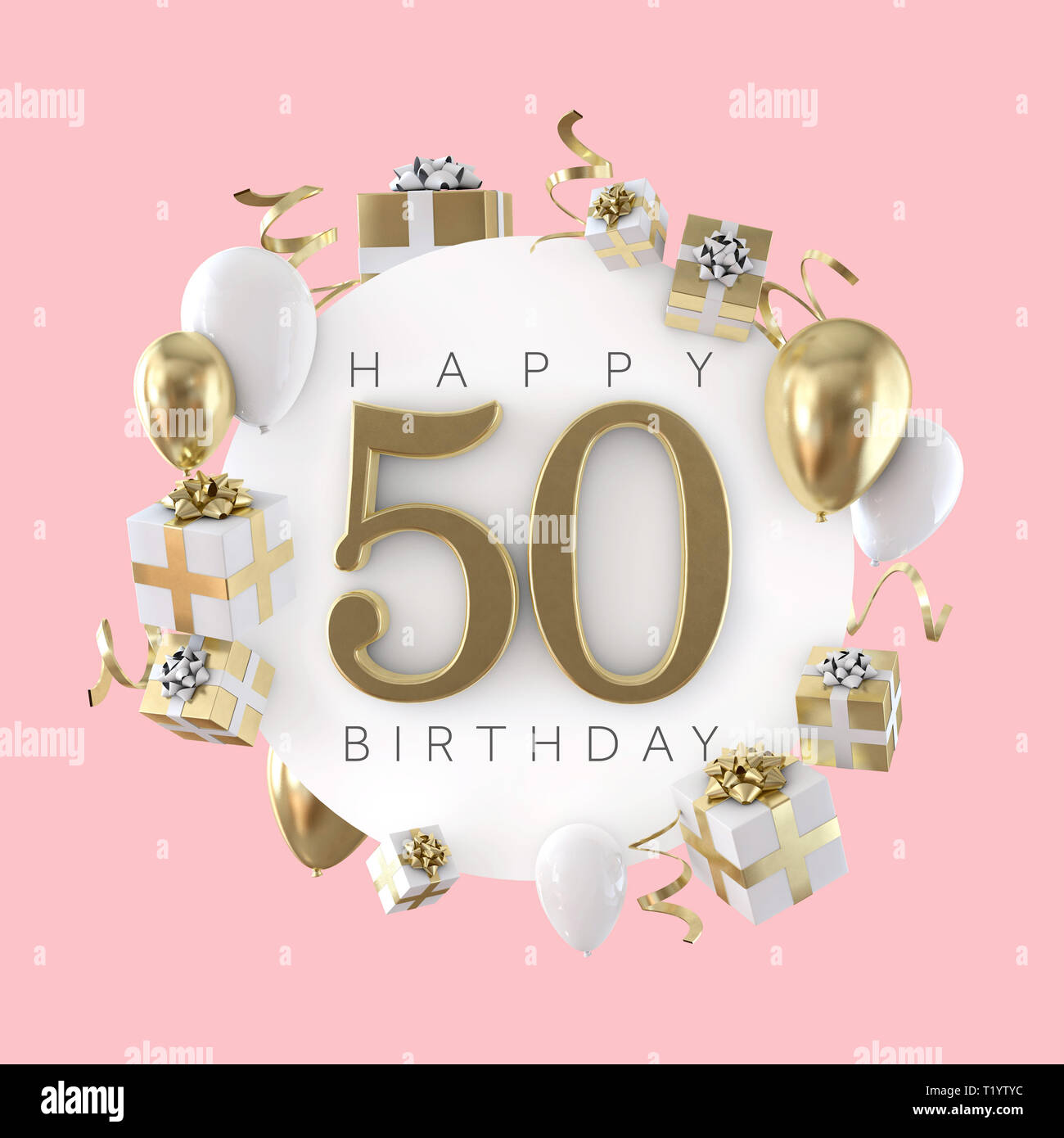 Oro Felice Cinquantesimo Compleanno Palloncino Sfondo Saluto Il Rendering 3d Foto Stock Alamy