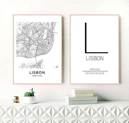 Terilizi Mappa Della Citta Di Lisbona Poster Art Decor Stampe Su Tela Bianco E Nero Portogallo Lisbona Tela Pittura Immagini Per Pareti Modern Home Decor 40x60cmx2 Senza Cornice Amazon It Casa E Cucina