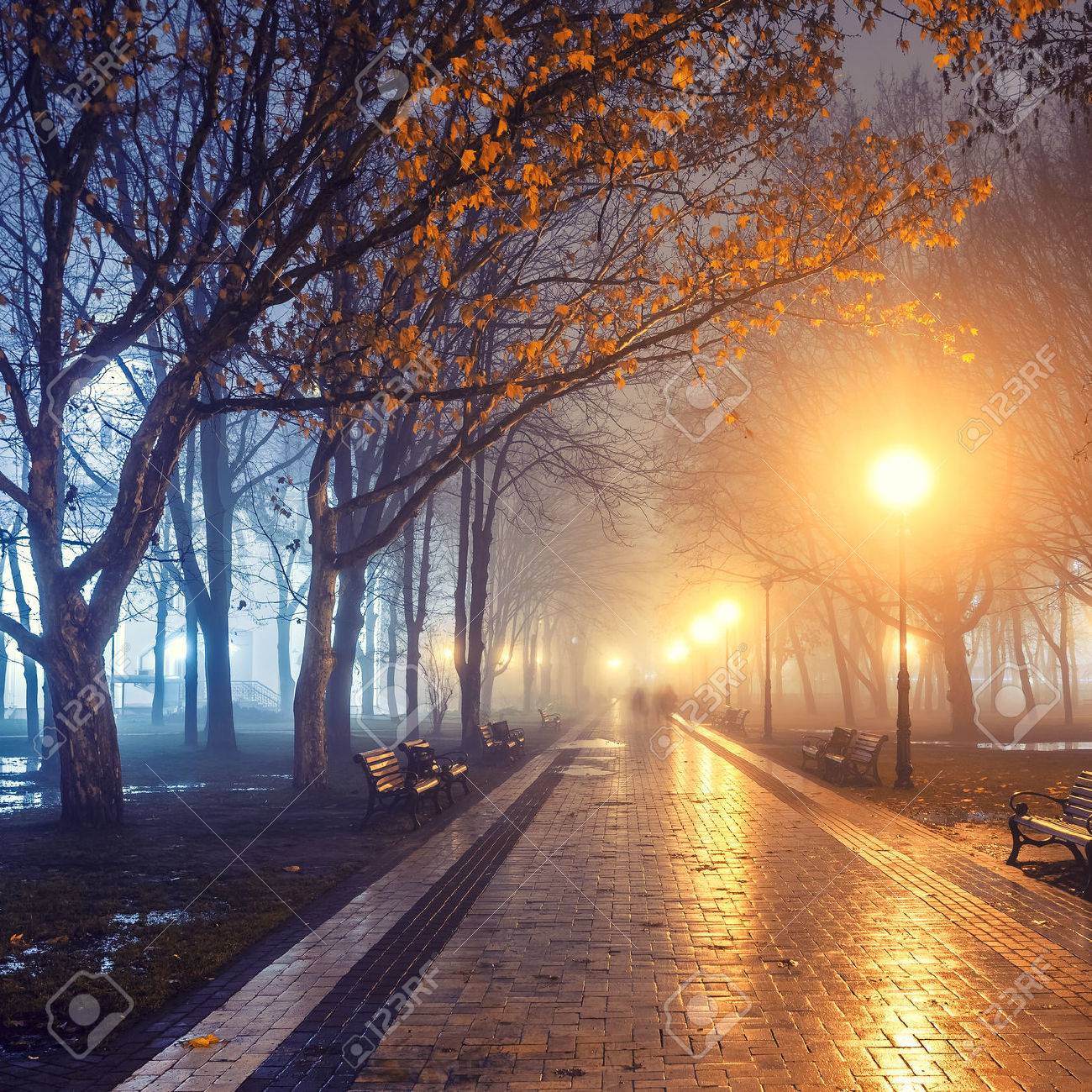 Immagini Stock Persone In Autunno Parco Della Citta Di Notte Image 46499010