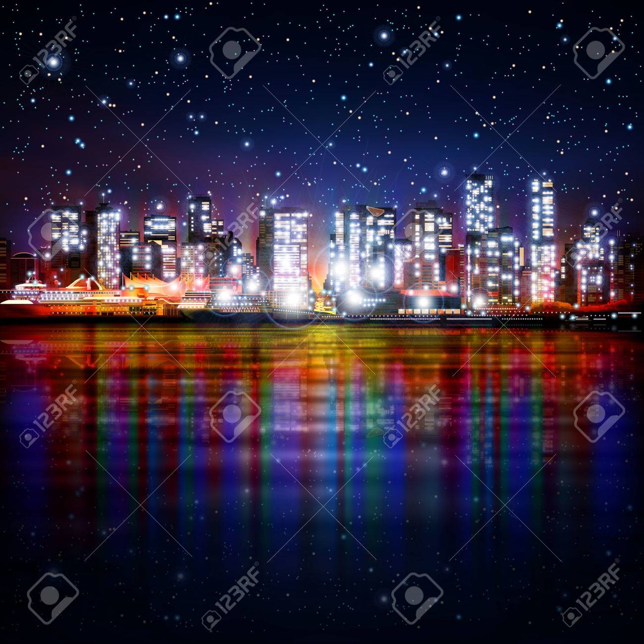 Vettoriale Sfondo Astratto Con Panorama Della Citta Illuminata Di Notte Image 45294264