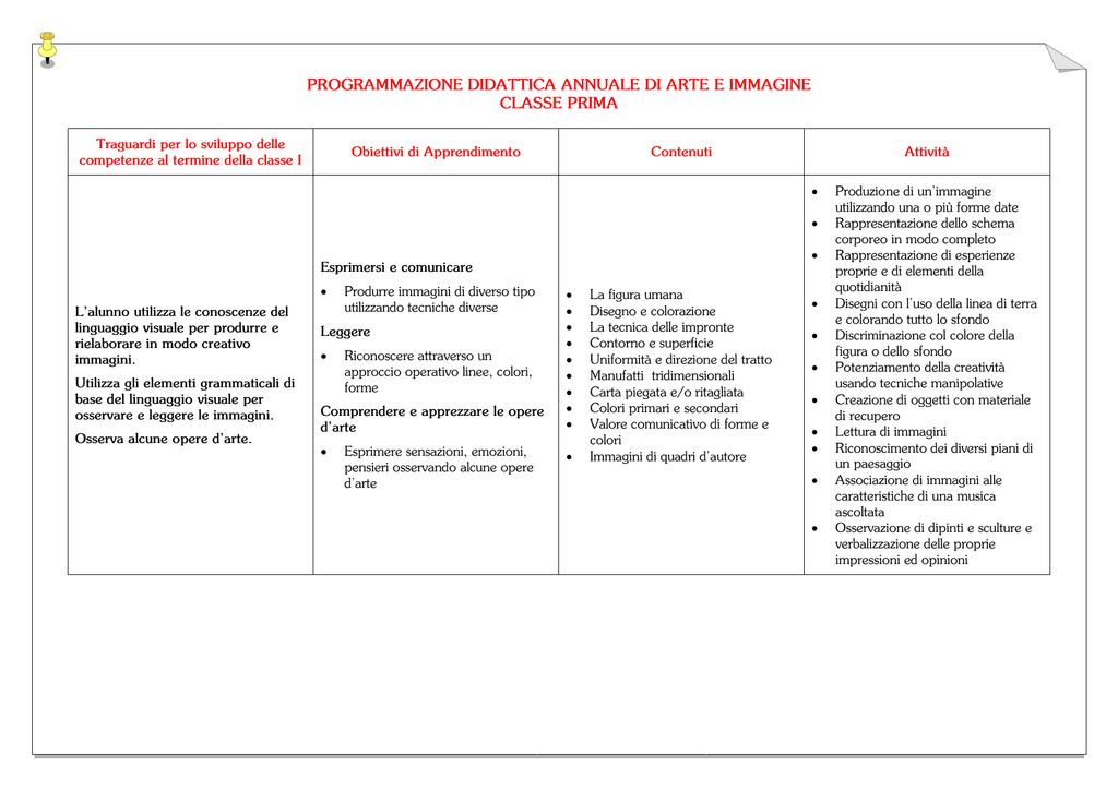 Programmazione Annuale Arte E Immagine Classe Prima Pdf Download Gratuito