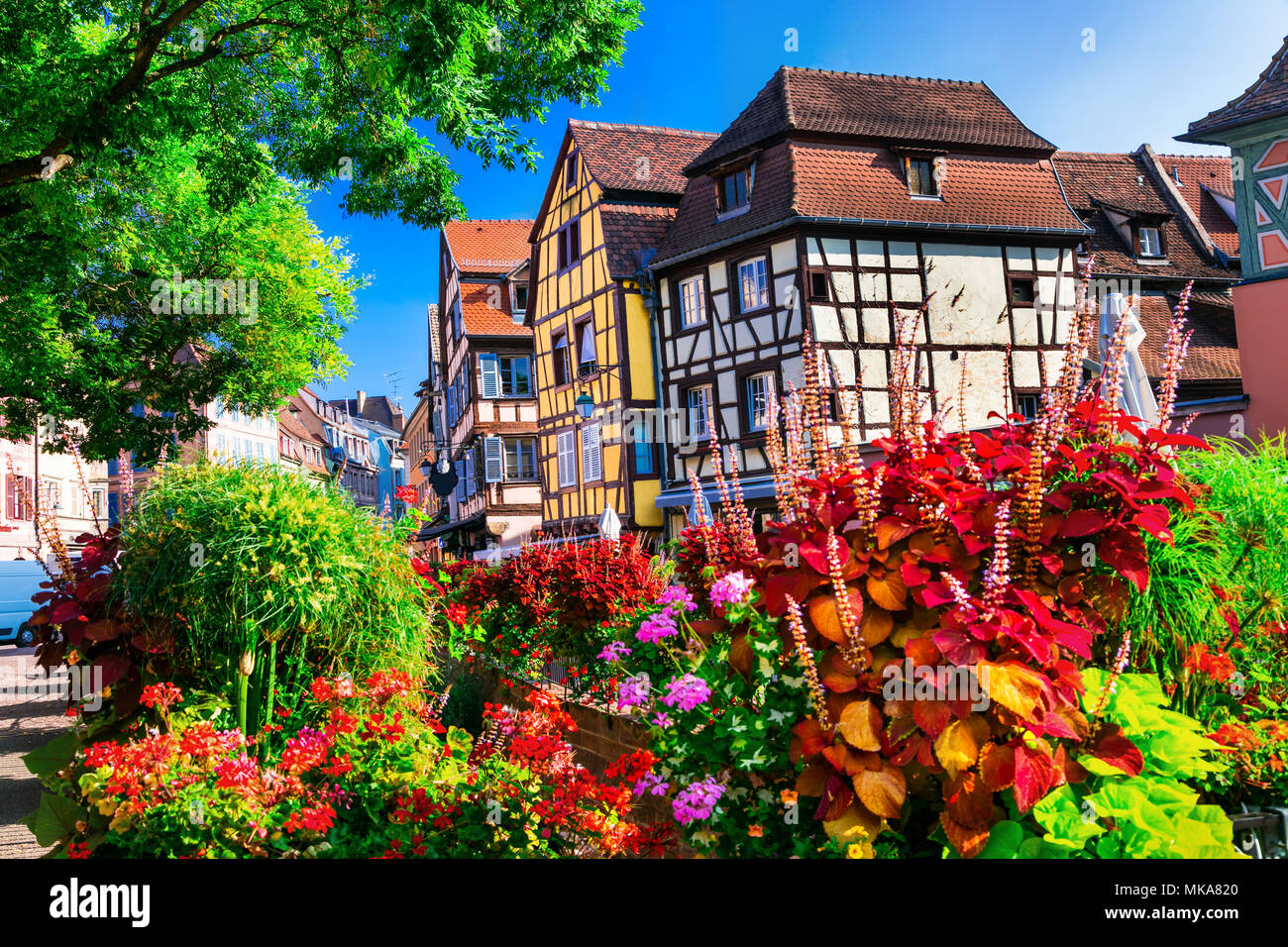 Tradizionali Case Colorate In Colmar Citta Vista Con Fiori L Alsazia Francia Foto Stock Alamy