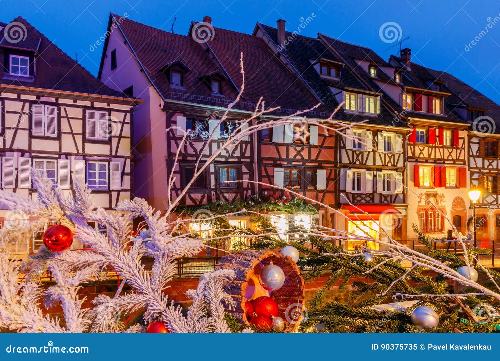 Citta Francese Colmar Sulla Notte Di Natale Immagine Stock Immagine Di Acqua Romantico 90375735