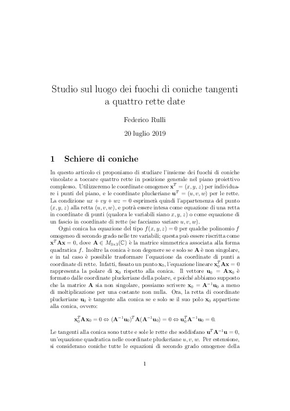 Pdf Studio Sul Luogo Dei Fuochi Di Coniche Tangenti A Quattro Rette Date Federico Rulli Academia Edu