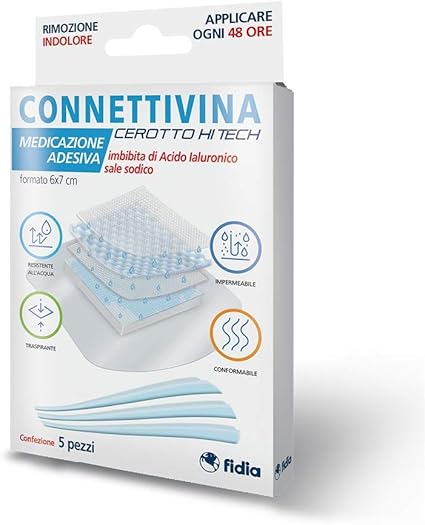 Connettivina Cerotto Hi Tech Fidia Farmaceutici Formato 6x7 Cm Per Escoriazioni Piccoli Tagli E Scottature Imbevuto Con Acido Ialuronico Sale Sodico Amazon It Salute E Cura Della Persona