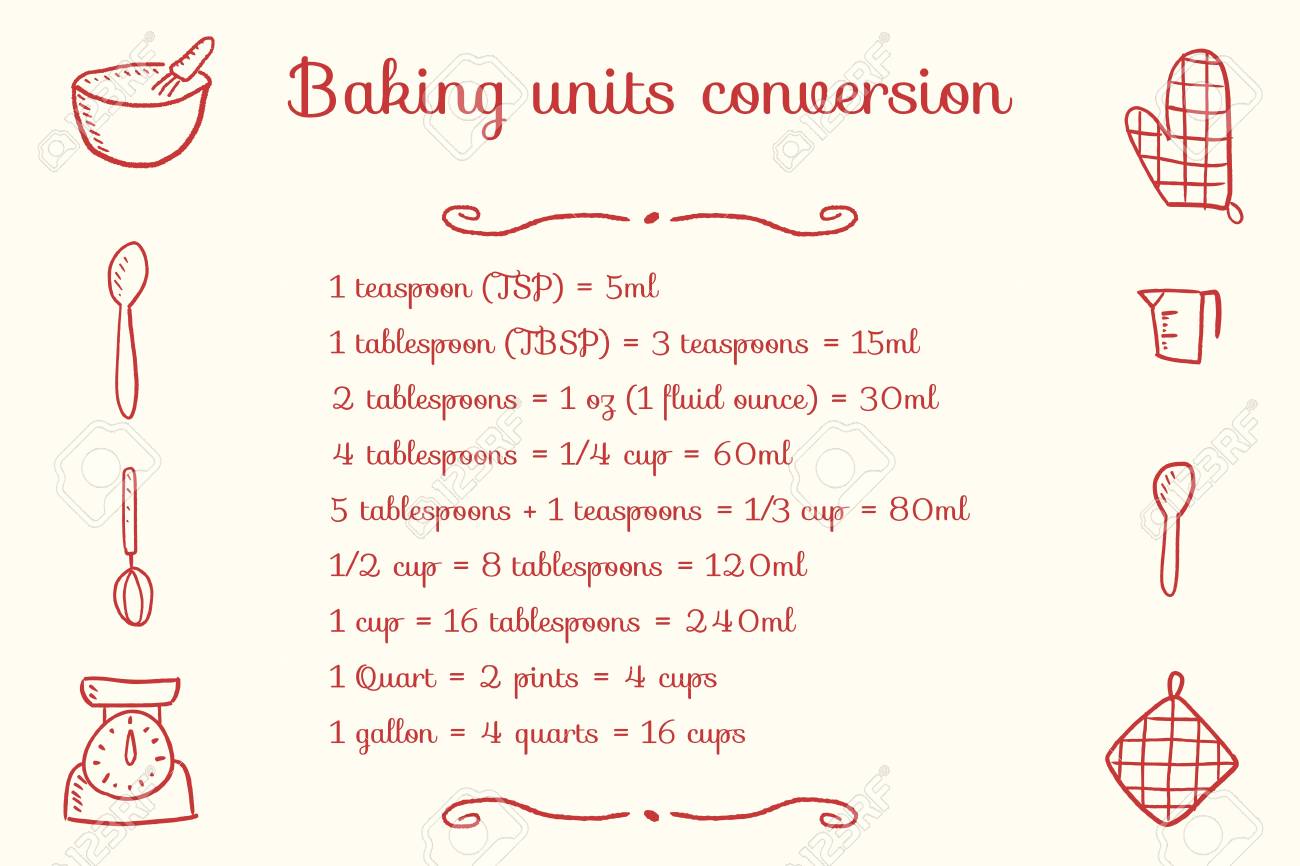 Vettoriale Tabella Di Conversione Delle Unita Di Cottura Unita Di Misura Della Cucina Disegno Di Cottura Image 93086744