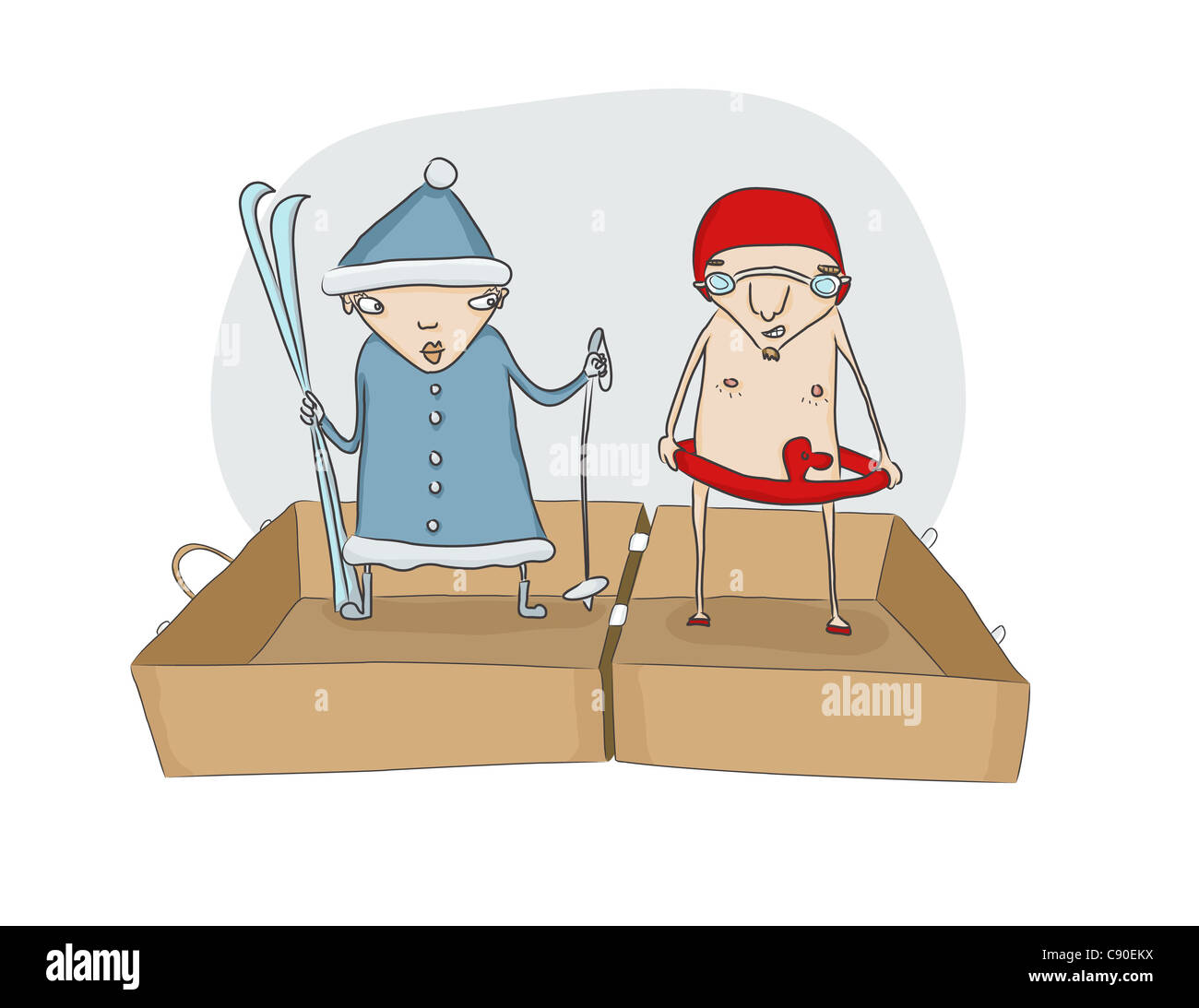 Illustrazione Di Divertenti Coppia Giovane Imballaggio Le Loro Cose Prima Della Vacanza Foto Stock Alamy