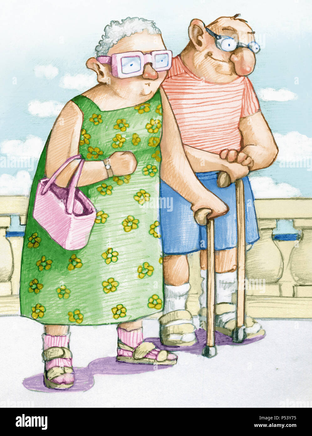 La Coppia Divertente Anziana Cammina In Costa Illustrazione Di Stock Illustrazione Di Matita Editoriale 119717973