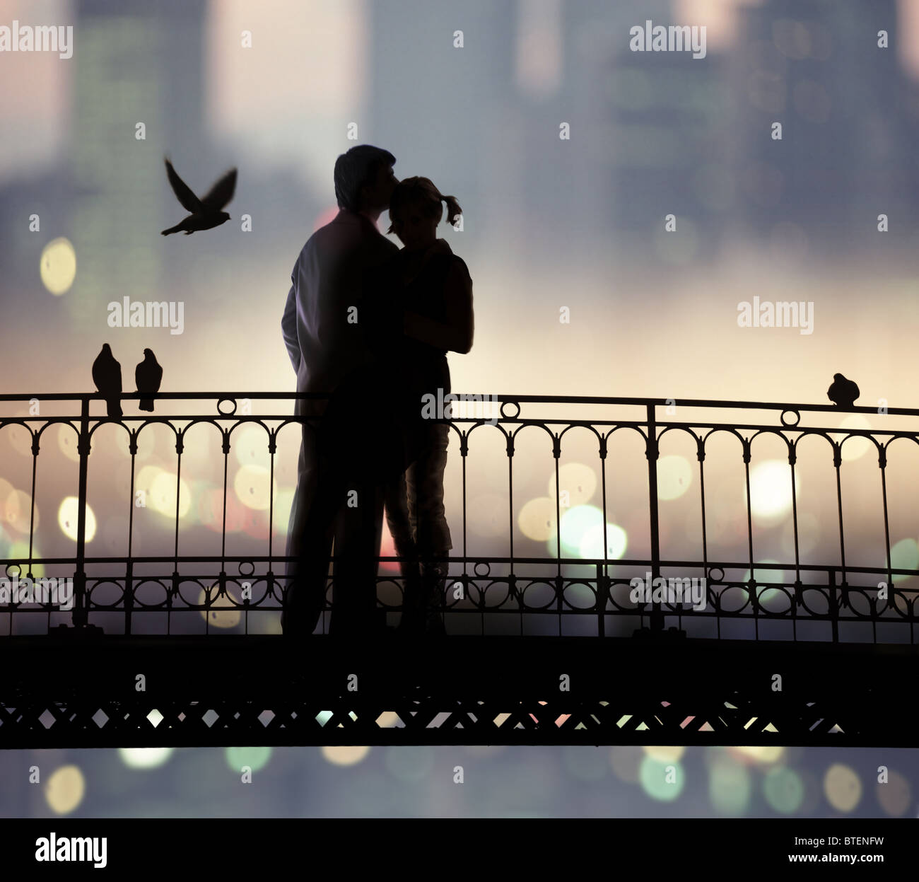 Silhouette Di Ponte E Coppia Di Innamorati Su Sfondo Della Citta Foto Stock Alamy