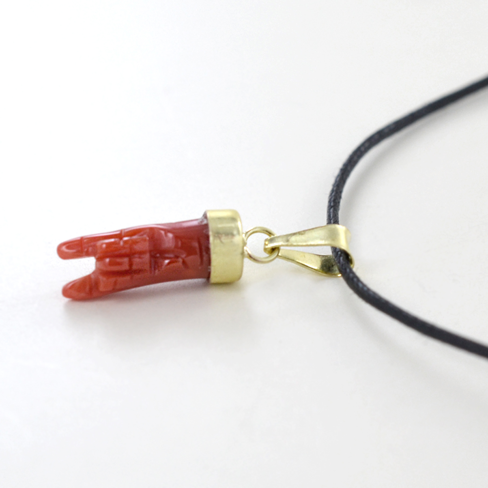Ciondolo Mano Corna Media Portafortuna In Oro E Corallo Oro 18 Kt Gioiellor