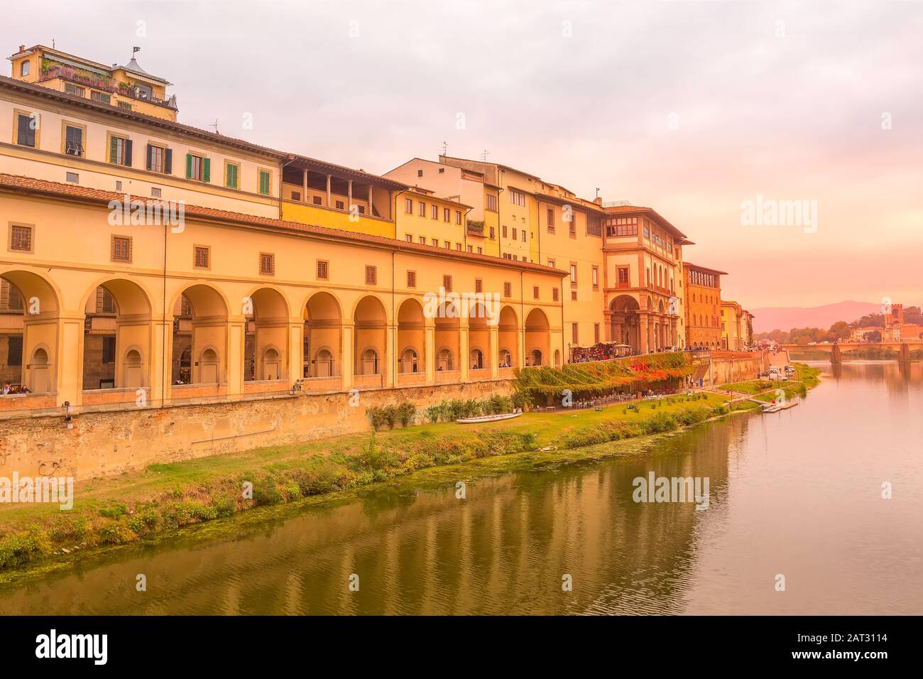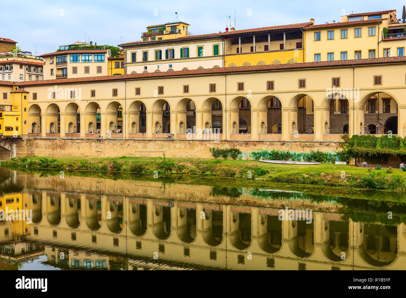 Florence Tuscany Italy Archs Of Vasari Corridor Or Corridoio Vasariano And Reflection In The River Arno Stock Photo Alamy