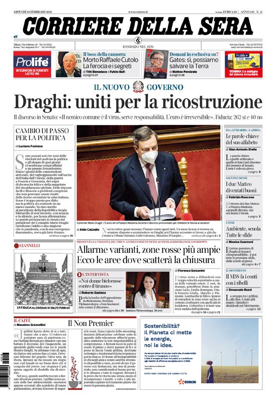Notizie Di Oggi La Prima Pagina Del Corriere Della Sera
