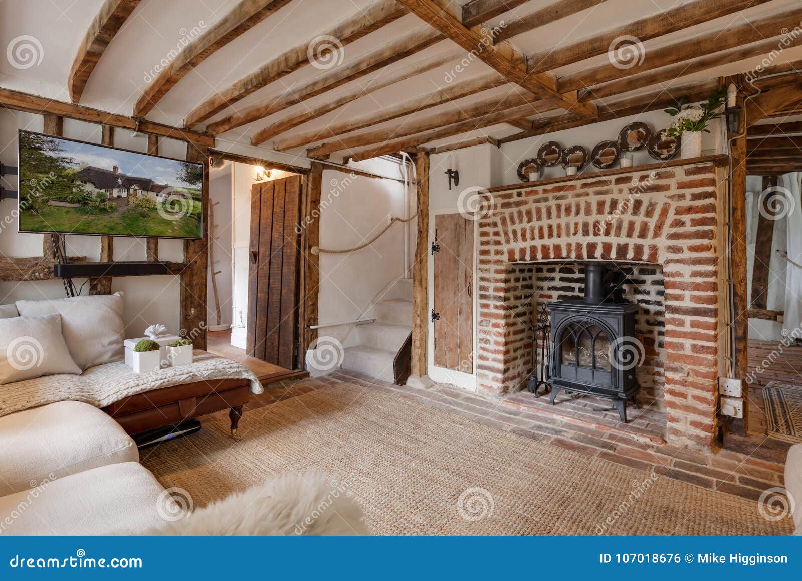 Bello Salone Inglese Del Xvi Secolo Del Cottage Fotografia Stock Immagine Di Televisione Homely 107018676