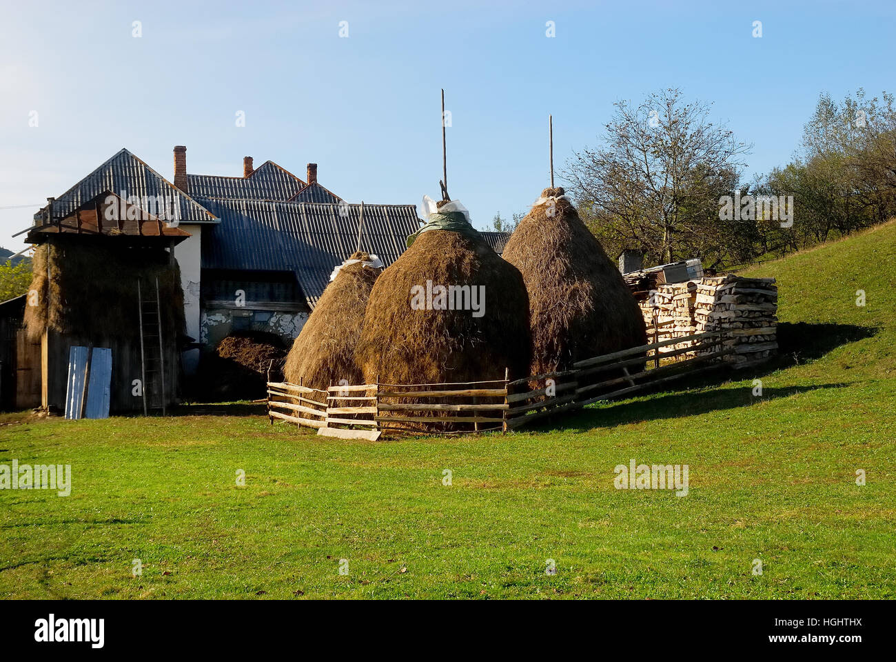 Maramures Isolata Regione Dei Carpazi Della Romania Covoni Di Fieno Foto Stock Alamy