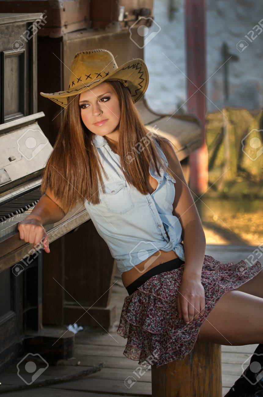 Immagini Stock Cowgirl Con Il Cappello Nella Citta Occidentale Image 31199473