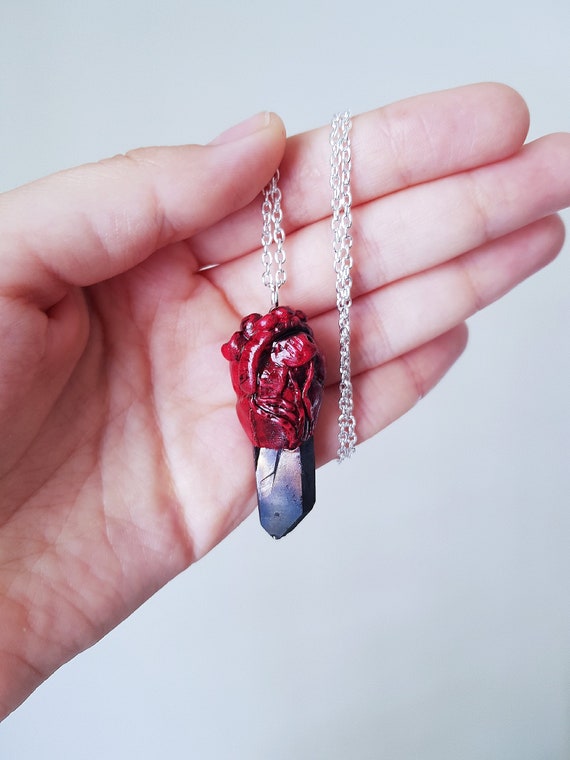 Collana Pendente In Quarzo Di Cristallo Di Cuore Anatomico Etsy