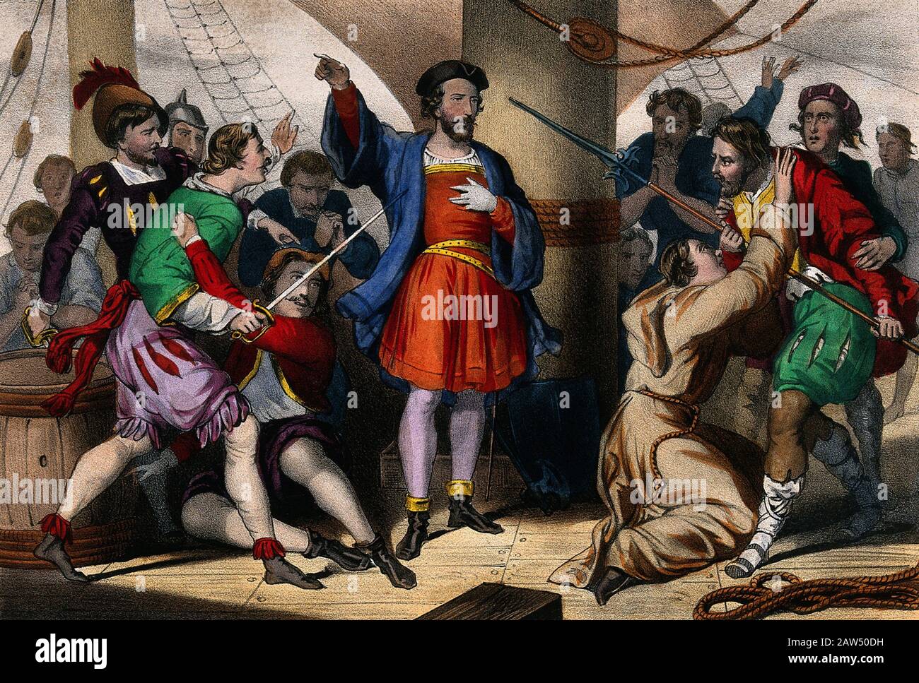 1840 Ca The Italian Esplorer Christopher Columbus Cristoforo Colombo 1451 1506 On His Ship Admonishes His Men For Their Lack Of Courage Stock Photo Alamy