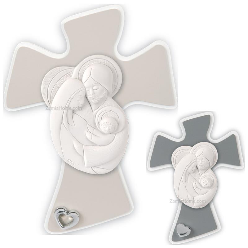 Croce Sacra Famiglia Kikke Cm 17x12 Grigio Icona Sacra Memo929 1g Sacri Bomboniere