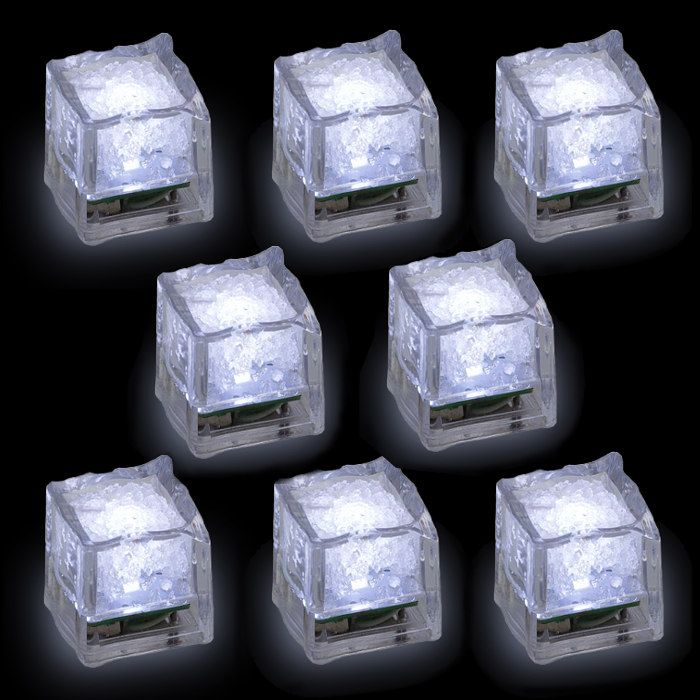Set 8 Cubetti Di Ghiaccio Galleggianti A Batteria On Off Sensore Umidita Led Bianco Ghiaccio
