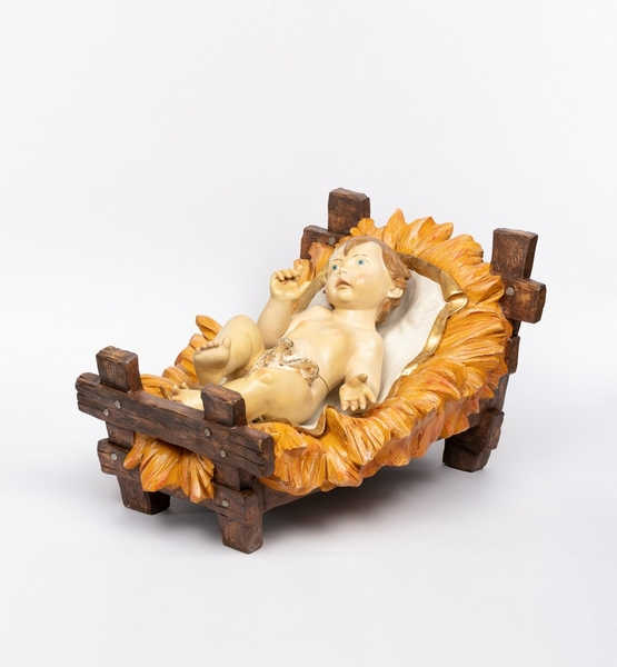 Gesu Bambino E Culla In Resina Dipinta A Mano Per Presepe Cm 125