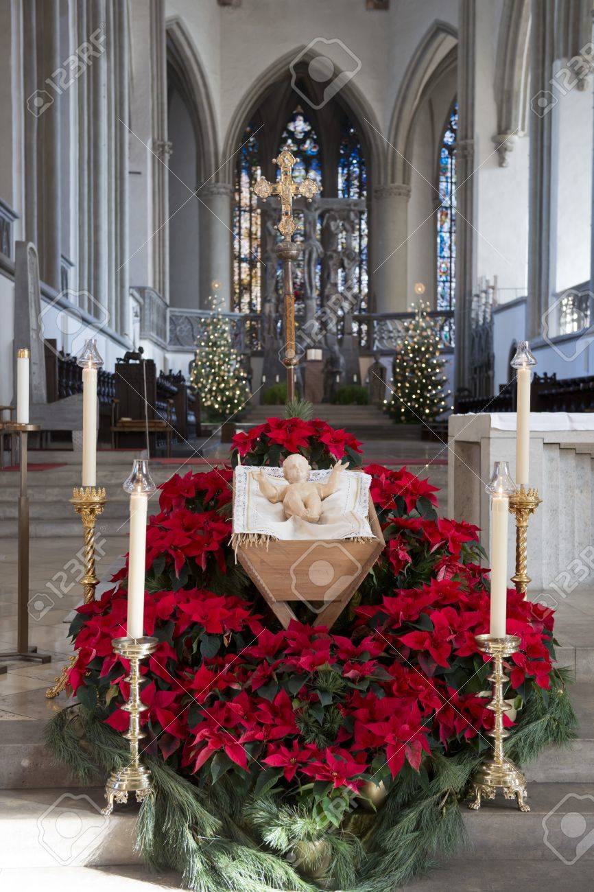 Immagini Stock Gesu Bambino Su Una Culla Circondata Da Fiore Rosso Nella Cattedrale Di Augsburg Germania Image 25419932