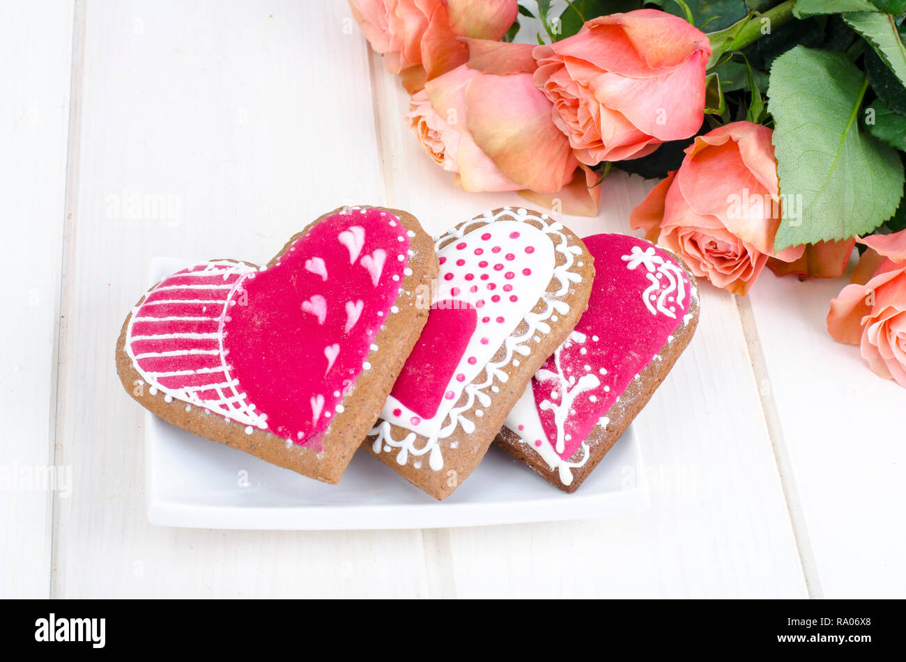 In Casa Di Panpepato Cuori E Bellissimi Fiori Per Il Giorno Di San Valentino Foto Studio Foto Stock Alamy