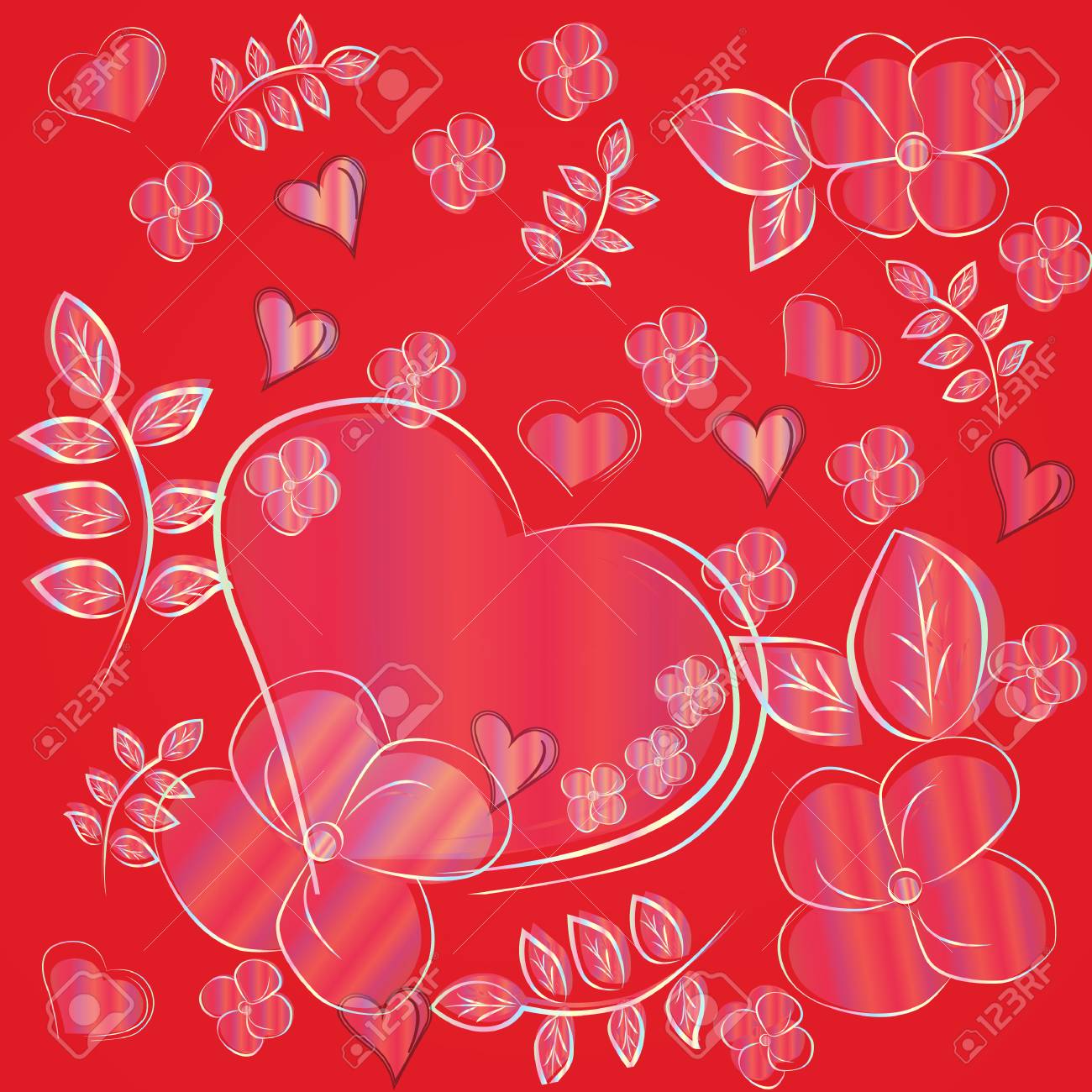Immagini Stock Astratto Con Bellissimi Fiori E Cuori Image 8922262